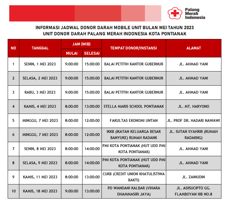 Jadwal Mobile Unit Bulan Mei 2023