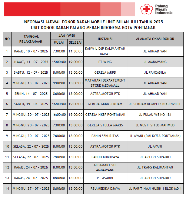 Update Jadwal Donor Darah Mobile Unit Bulan Juli 2025