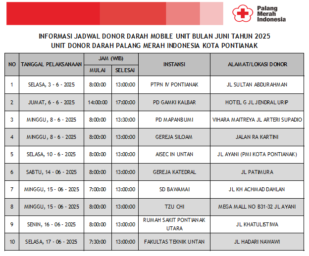 Update Jadwal Donor Darah Mobile Unit Bulan Juni 2025