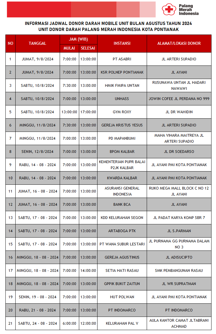 Update Jadwal Mobile Unit Bulan Agustus Tahun 2024