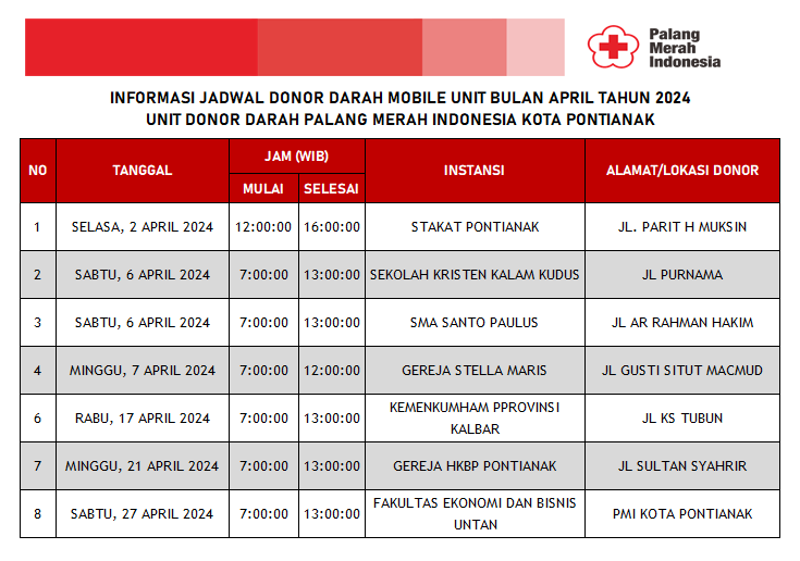 Update Jadwal Donor Darah Mobile Unit Bulan Maret 2026
