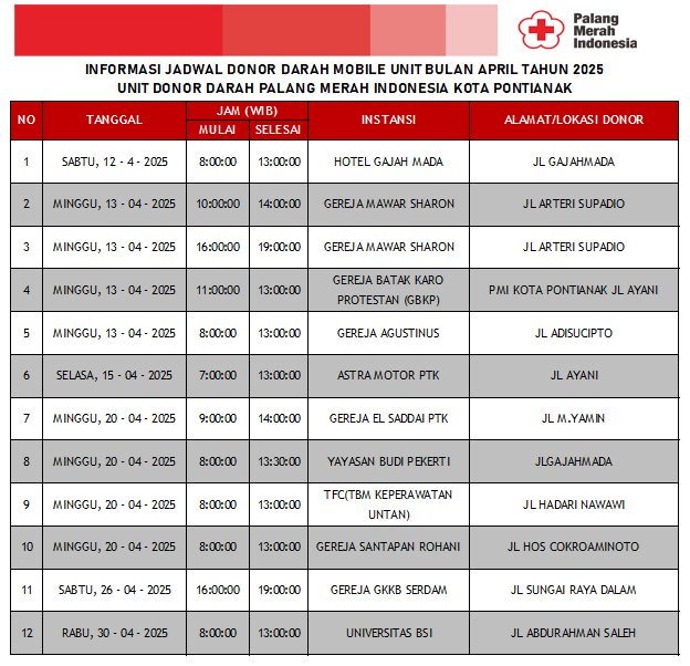 • Alamat UDD PMI Kota Pontianak