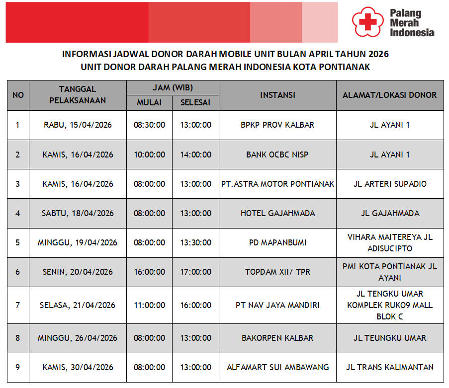 Update Jadwal Mobile Unit Bulan April Tahun 2026