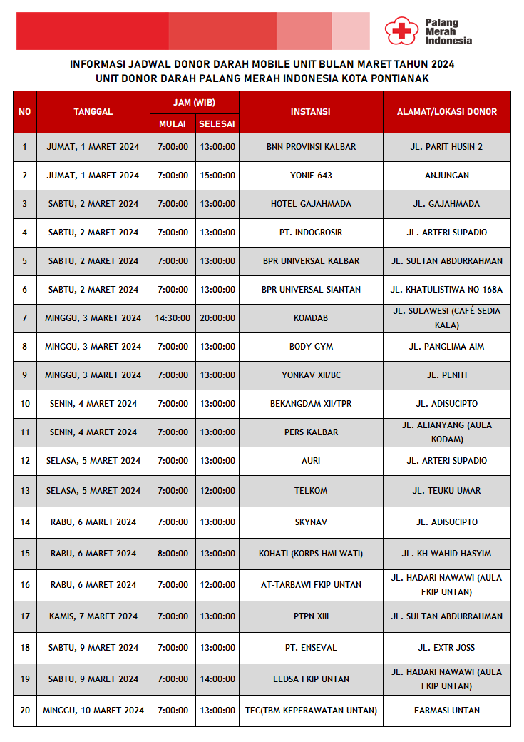 Update Jadwal Donor Darah Mobile Unit Bulan Maret 2026