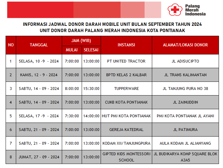 Update Jadwal Mobile Unit Donor Darah Bulan September 2024